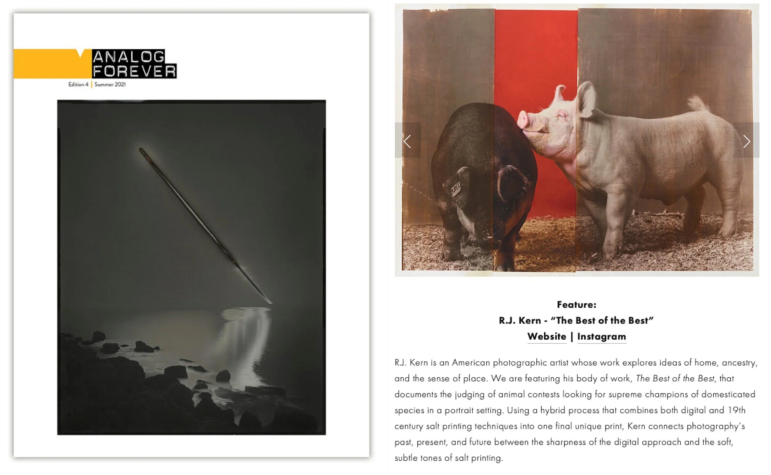 Selections from my series The Best of the Best will be published in Analog Forever Magazine, Edition 4 (released Summer 2021). I am proud to have work featured in this beautiful printed publication focused on analog photography. I’ll be joined by nine analog and experimental photographers from around the globe, "each exploring various methods for using the medium we love in individual, creative ways."