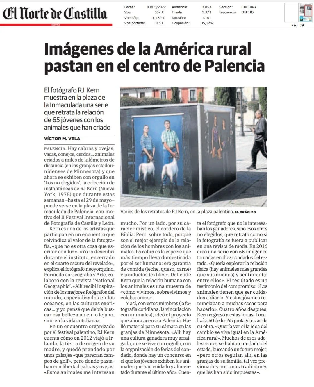 R. J. Kern’s exhibition review by Victor Vela in El Norte de Castilla, the newspaper of Palencia, Spain on May 2, 2022.