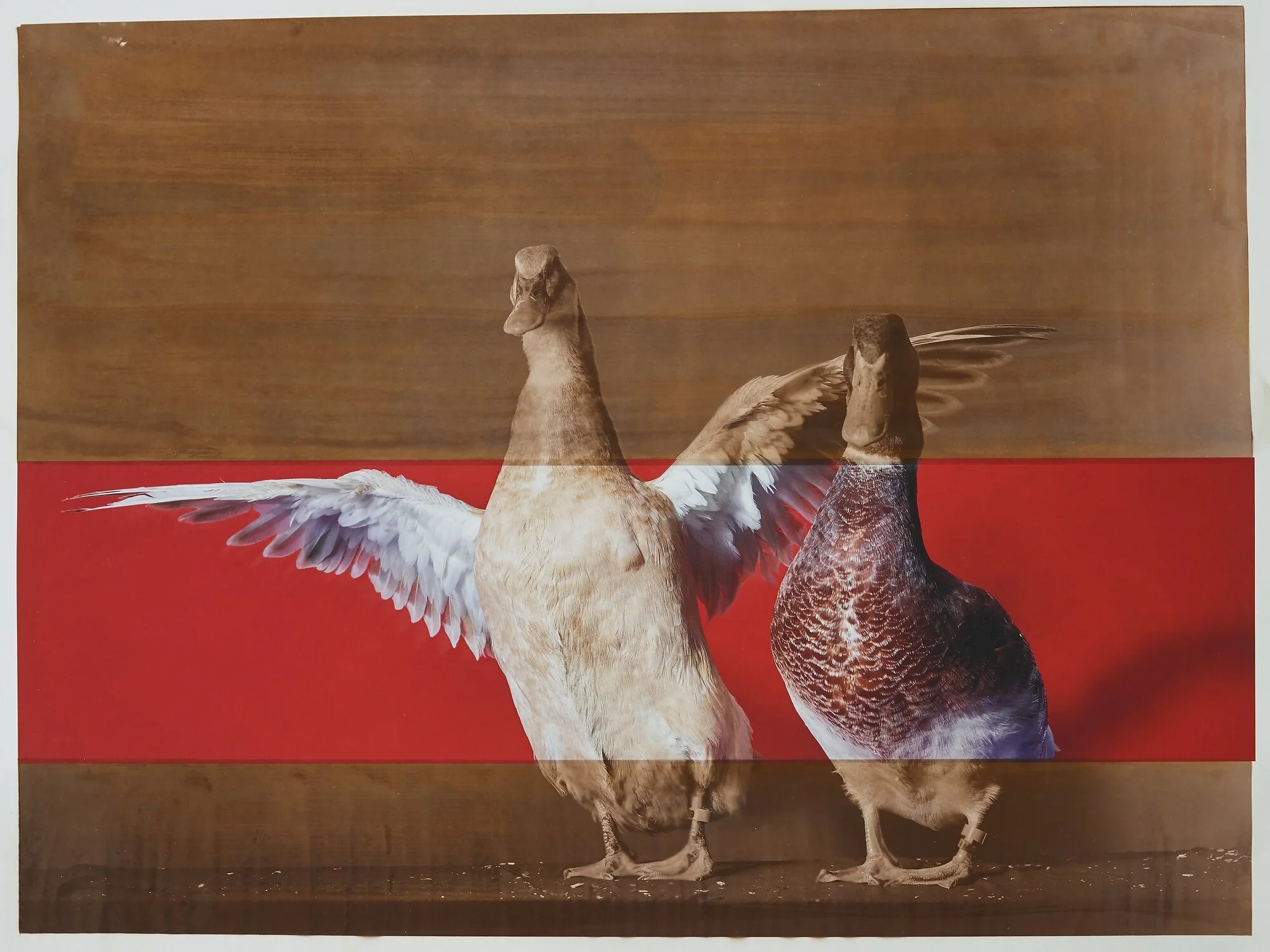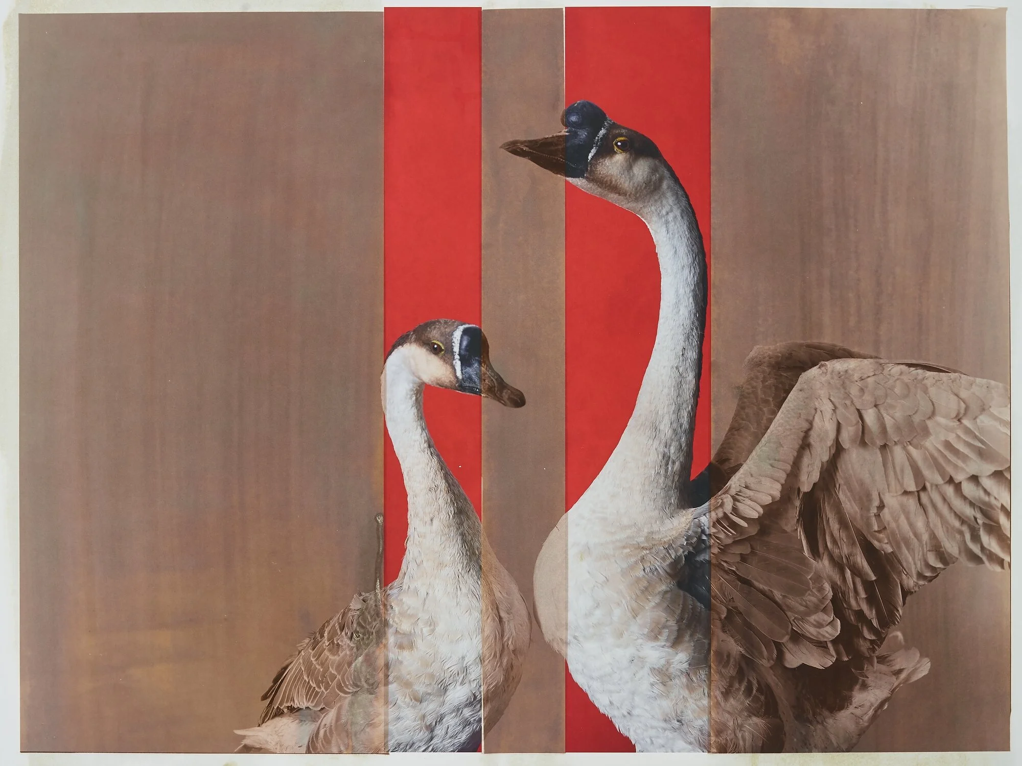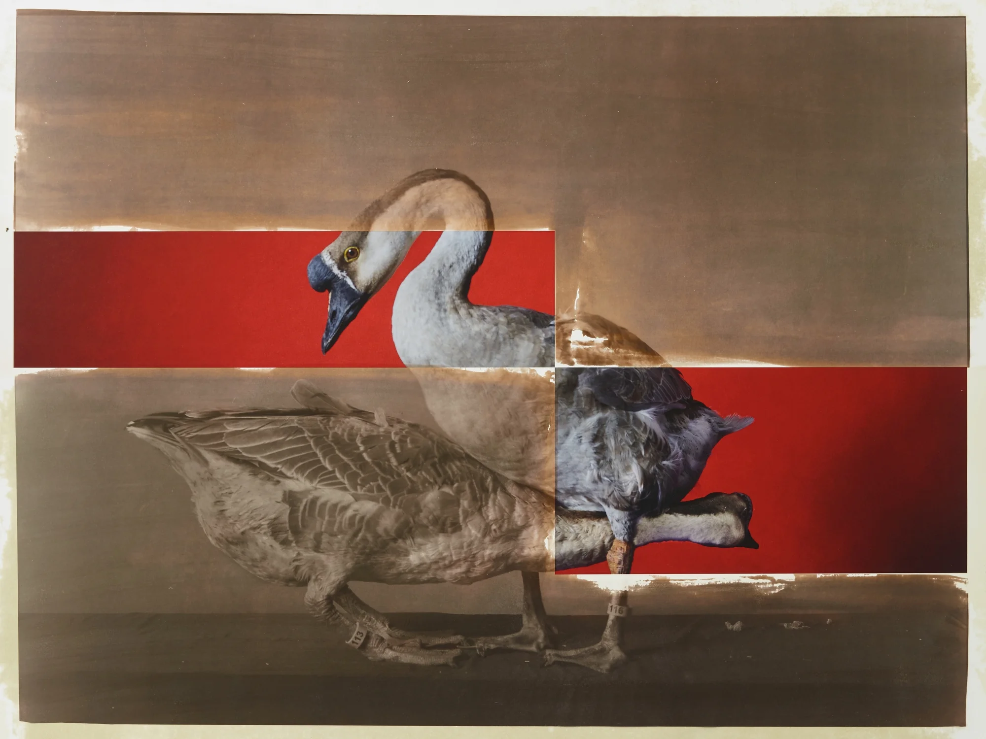 The color red is a unifying element and a nod to French photographer Nadar (Gaspard-Félix Tournachon, 1820–1910), who used the color in marketing his work. Historically, the color red has represented life, health, and victory. It also symbolizes a shared characteristic between the animals: the color of blood, whose principal ingredient is salt— an essential element for mammals and birds.
